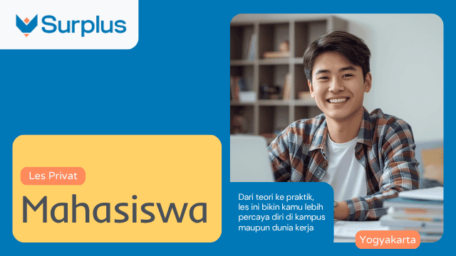 Les Mahasiswa Yogyakarta dari Surplus hadir sebagai pendamping akademik yang relevan dan fleksibel. Setiap sesi disusun menyesuaikan silabus kampus dan jurusan masing-masing peserta.